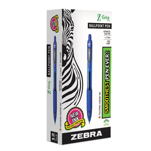 Zebra® Z-grip Retractable Ballpoint Pen, Medium 1 Mm, Blue Ink, Clear Barrel, Dozen