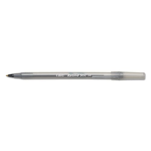 BIC Round Stic Xtra Life Stick Ballpoint Pen, 1 Mm, Black Ink, Smoke Barrel, Dozen