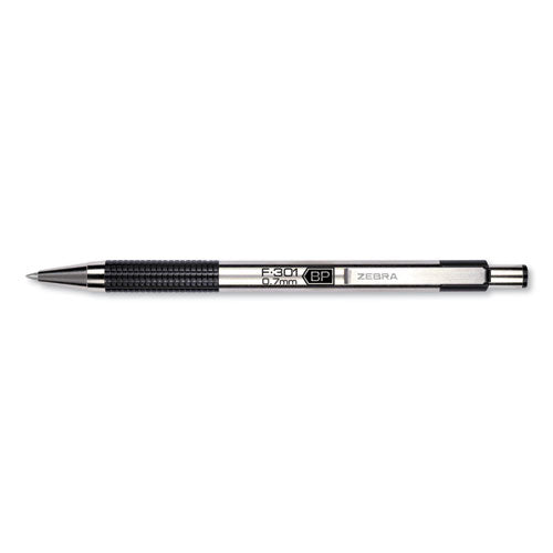 Zebra® F-301 Retractable Ballpoint Pen, 0.7 Mm, Black Ink, Stainless Steel-black Barrel