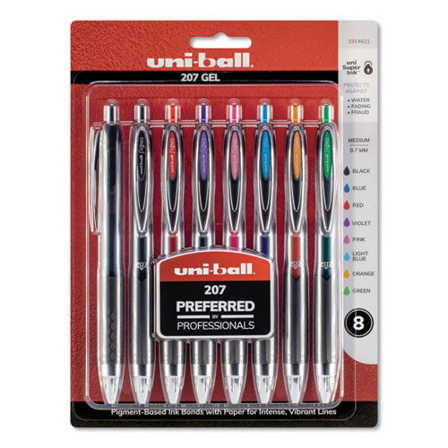 UNIBALL Signo 207 Retractable Gel Pen, Medium 0.7 Mm, Assorted Ink, Black Barrel, 8-set