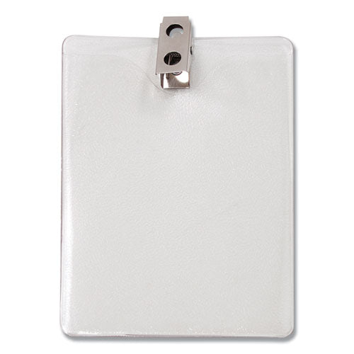 Id Badge Holder W-clip, Vertical, 3.8w X 4.25h, Clear, 50-pack