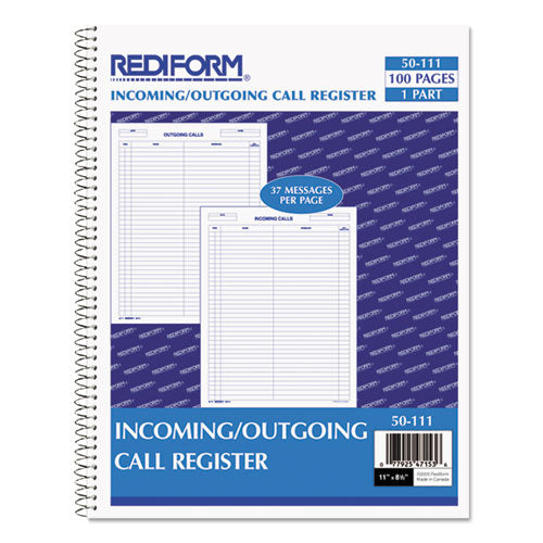 Wirebound Call Register, 8 1-2 X 11, 3, 700 Forms-book