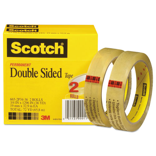 Scotch Double-sided Tape, 3″ Core, 0.75″ X 36 Yds, Clear, 2-pack