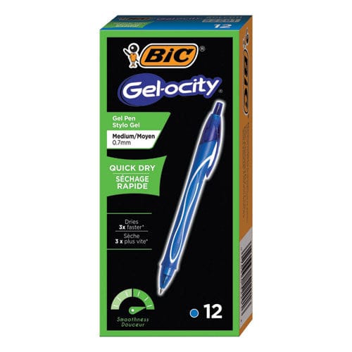 BIC Gel-Ocity Quick Dry Retractable Gel Pen, Medium 0.7mm, Blue Ink-barrel, Dozen