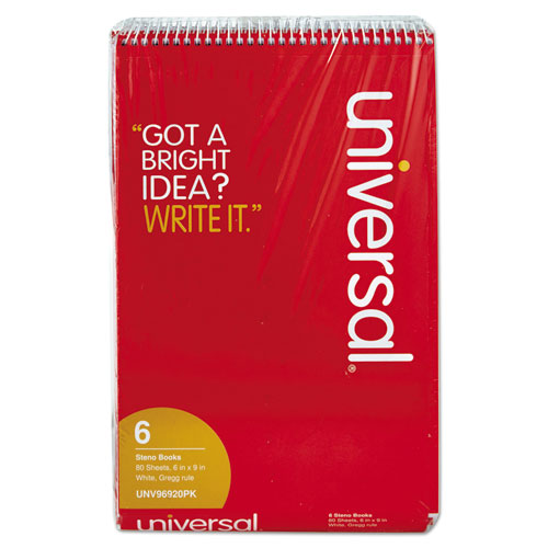 UNIVERSAL® Steno Books, Gregg Rule, 6 X 9, White, 80 Sheets, 6-pack
